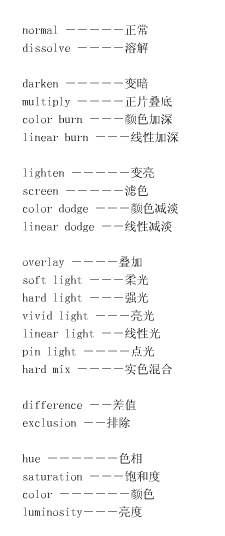 注:PS图层混合模式的中英文对照